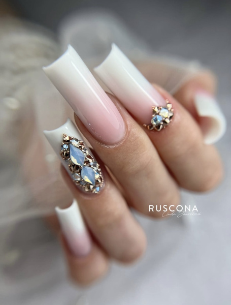 Dieser Stil ist auch unter dem Namen Babyboomer-Ombré-Nägel bekannt, da er die Technik des sanften Farbmischens nutzt. Das Ergebnis sind Nägel, die luxuriös, rein und professionell aussehen, ohne dabei auffällig zu sein.
